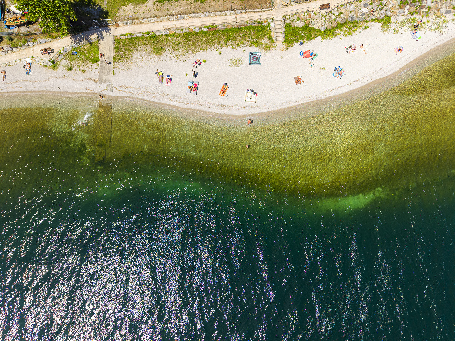 Le spiagge di Oliveto Lario si vivono con lentezza: ci si tuffa, si osserva il paesaggio, ci si rilassa.